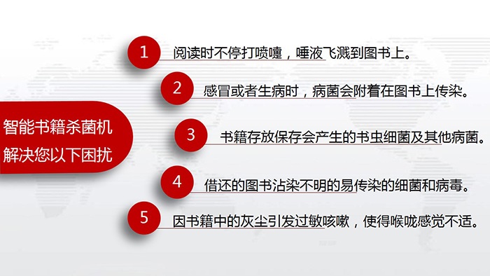 由于圖書(shū)館書(shū)籍的出借率和流通率比較高,在借閱的過(guò)程中難免會(huì)帶上各種細(xì)菌,導(dǎo)致病菌的傳播,例如書(shū)蟲(chóng)、細(xì)菌、新型的甲型流感病毒、大腸桿菌、灰塵、霉菌和其它傳染性的病毒等,還有些化學(xué)物質(zhì),如氨、二甲苯和甲醛是產(chǎn)生于制造書(shū)籍的過(guò)程中,而這些化學(xué)物質(zhì)則是誘導(dǎo)癌癥的致命原因。那些常年被保存在圖書(shū)館的圖書(shū),是這些書(shū)蟲(chóng)和細(xì)菌滋長(zhǎng)的溫床,如果不能夠及時(shí)清理,會(huì)一定程度的損壞寶貴的藏書(shū),也會(huì)導(dǎo)致人體的各種皮膚疾病,誘發(fā)各種健康問(wèn)題。