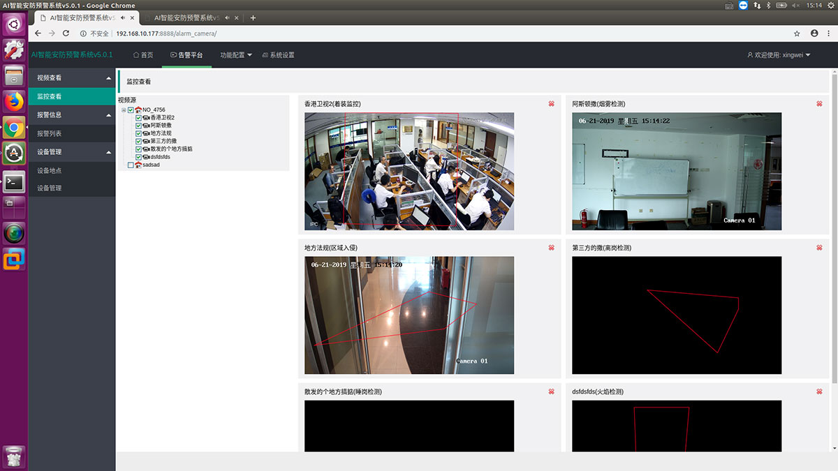 四.直觀性強(qiáng):當(dāng)視頻出現(xiàn)判定行為,報(bào)警信號(hào)會(huì)直接的出現(xiàn)在屏幕上,觀察人員會(huì)直觀的發(fā)現(xiàn)判定區(qū)域進(jìn)行處置